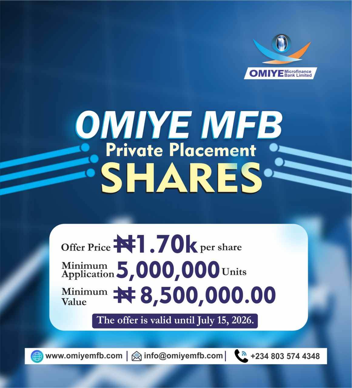 Omiye Microfinance Bank Limited started operation as a community bank incorporated and licensed to carry out community banking on September 12 1991.